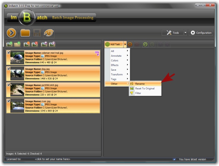ImBatch allows users to rename image files in bulk through the use of templates. A feature that can be found under the Other grouping under Add Task, Rename is a powerful and convenient option when you need to save time. You can specify any existing meta tag value that you’d like ImBatch to reference, and this value will automatically be added to your new image files when you save them. To learn more about how to add a rename task, read on.