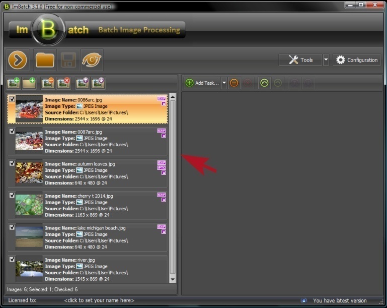 2. Next, specify which images you plan to work with. You can do this by clicking the Add new images for processing button or by dragging and dropping images into the work space located on the left side of your ImBatch window.