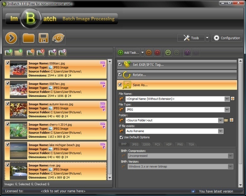 If you’ve ever found yourself needing to apply changes to hundreds of photos but had to edit each one individually, then you know how time consuming that can be. ImBatch solves that issue through its unique task structure. Because digital cameras these days automatically assign EXIF data, most programs that allow you to edit and view images are aware of how to display those images. Sometimes though, the images do not display correctly and rotating them so that they do appear as they should is one of the ways that ImBatch can help!