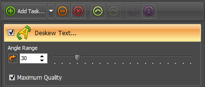 Add Task button to reveal the task menu. From this menu, click Transform followed by Deskew Text. This will add a new Deskew Text task to the task list frame.